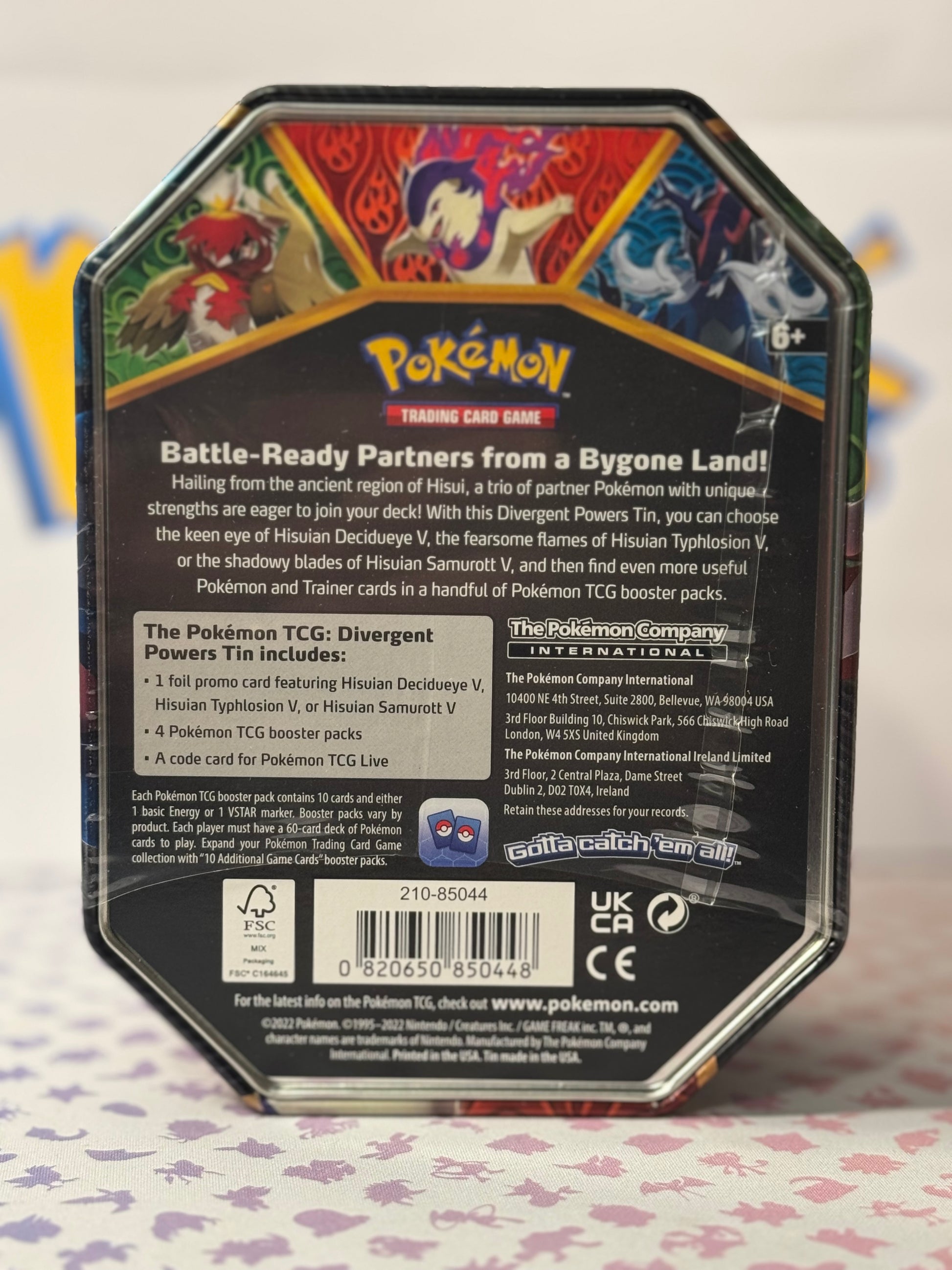 Each Pokémon TCG: Divergent Powers Tin includes: