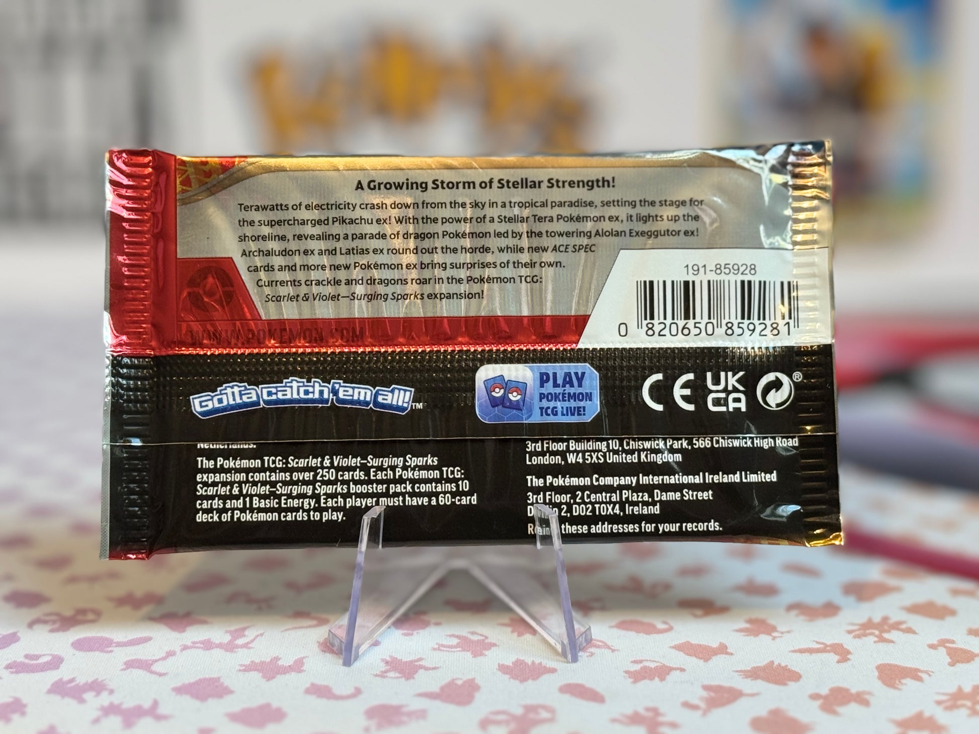Terawatts of electricity crash from the sky in a tropical paradise, setting the stage for the supercharged Pikachu ex! With the power of a Stellar Tera Pokémon ex, it lights up the shoreline, revealing a parade of dragon Pokémon led by the towering Alolan Exeggutor ex. Archaludon ex and Latias ex round out the horde, whilst new ACE SPEC cards and more new Pokémon ex bring their own surprises. Currents crackle and dragons roar in the Pokémon TCG: Scarlet & Violet - Surging Sparks expansion!